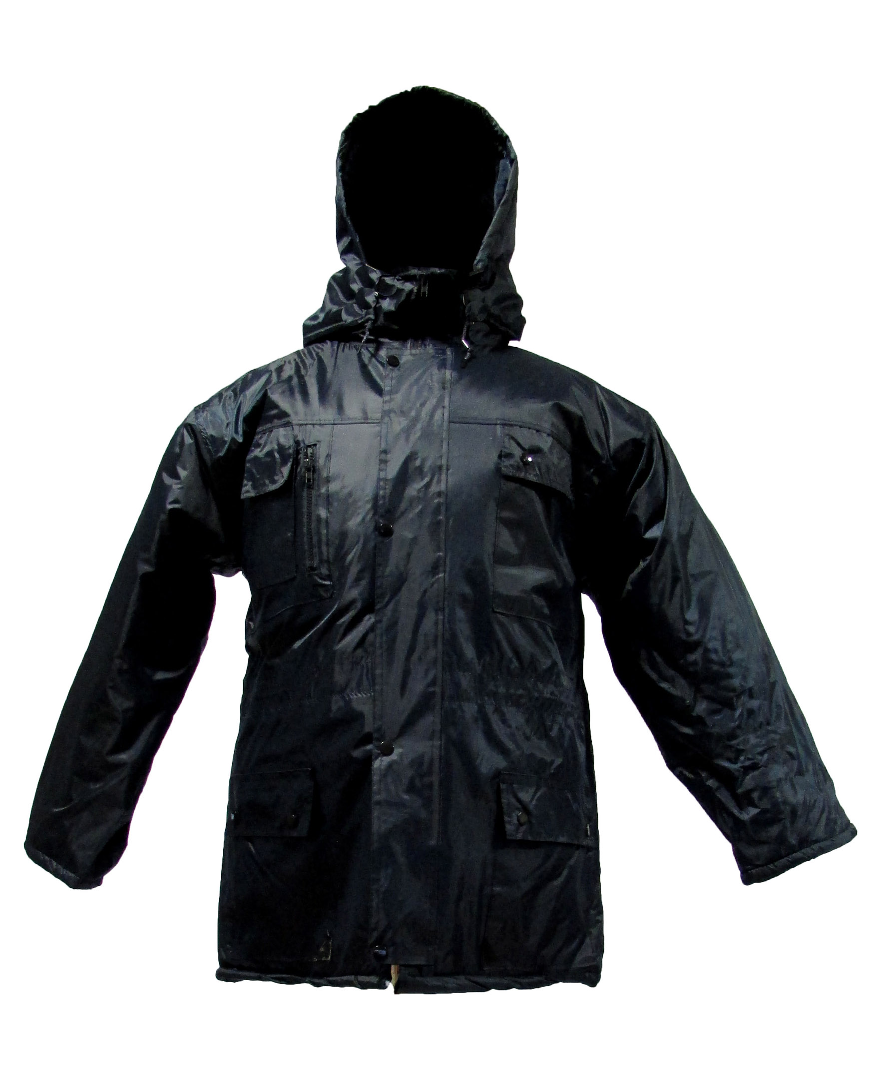 Inner quilted lining, multi-pocket parka collar, zippered front